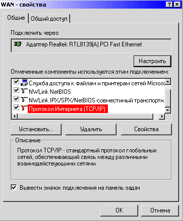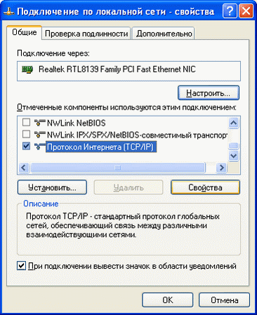 4. В диалоговом окне выберите Протокол Интернета (TCP/IP) и нажмите кнопку Свойства: