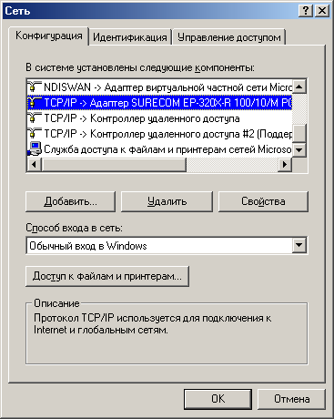 4. В диалоговом окне выберите TCP/IP -> Адаптер и нажмите кнопку Свойства: