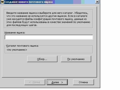 2. В поле Название ящика (Account name) укажите любое название создаваемого аккаунта, по которому вы сможете легко понять к какому почтовому серверу относится данный аккаунт.