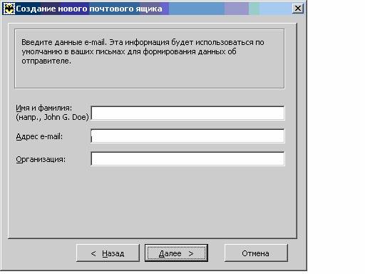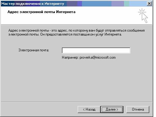В поле Адрес e-mail (E-mail address) укажите ваш e-mail. Например, name@domashka.kiev.ua