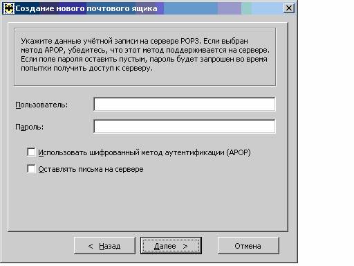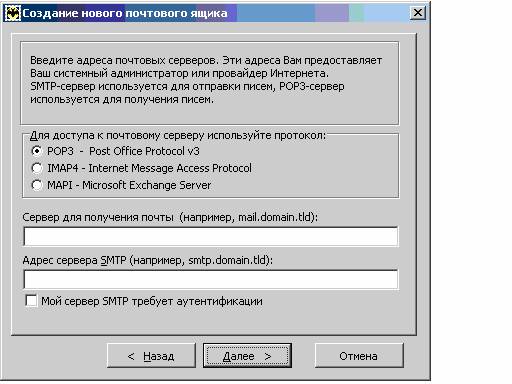 5. Выберите протокол для доступа к почтовому серверу POP3 - Post Office Protocol v3 .
