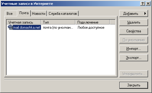 1. Запустите программу Outlook Express, откройте пункт меню Сервис (Tools) и выберите Учетные записи... (Accounts...).