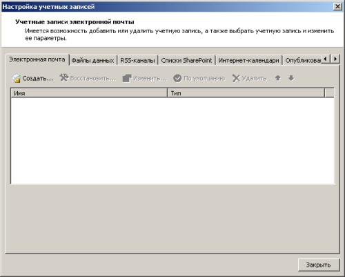 2. Во вкладке Электронная почта нажмите кнопку Создать...