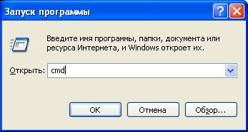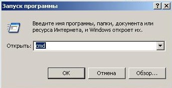 8. У вікні, що відкрилося, англійськими буквами наберіть «cmd» і натисніть кнопку «OK»
