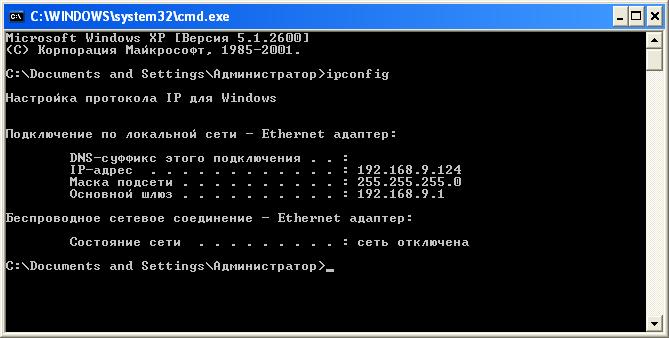9. У вікні, що відкрилося, англійськими буквами наберіть «ipconfig» і натисніть кнопку «Enter»