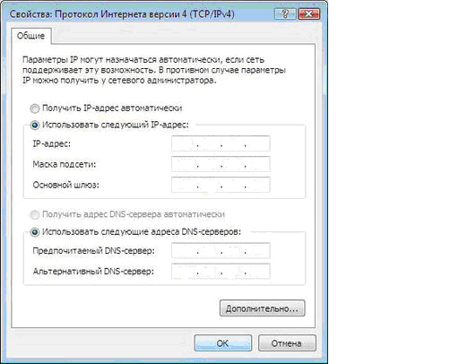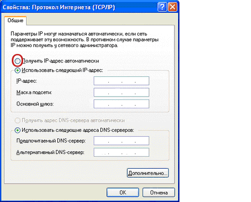 4. На комп'ютері зайдіть в налаштування протоколу TCP/IP підключення по локальній мережі ( http://www.domashka.net/directory/sett/ (посилання потім зміниться))