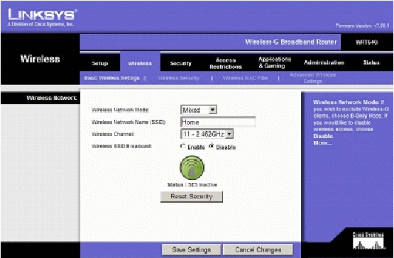8. Перейдіть до меню «Wireless → Basic Wireless Settings». Вкажіть перелічені нижче налаштування і натісніть кнопку «Save settings»: