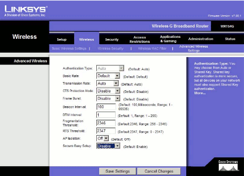 12. Перейдіть до меню «Wireless → Advanced Wireless settings» та напроти пункту «Secure Ease setup» поставте «Disable». Так ви відключите швидке конфігуруровання налаштувань натисканням кнопки на лицьовій стороні маршрутизатора, что дозволить запобігти перенастройки захисту випадковим натисканням.