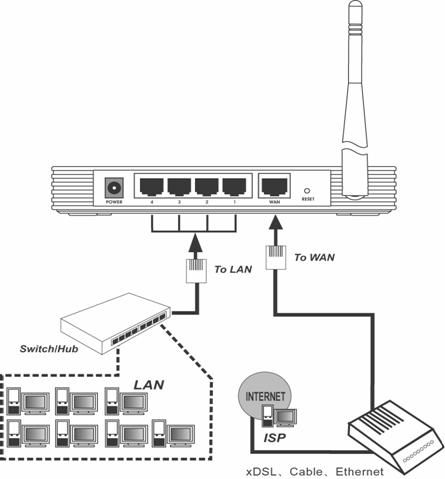 1. Підключіть компьютер до роутера (LAN — порти), приходящий Ethernet кабель ввімкніть в порт WAN.