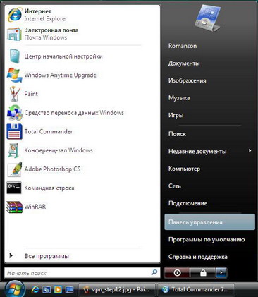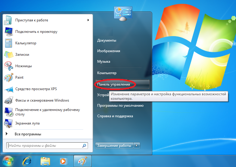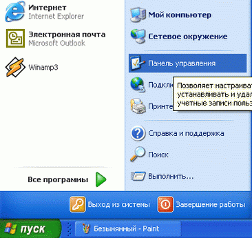 Натисніть кнопку Пуск та оберіть Панель управления: