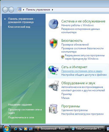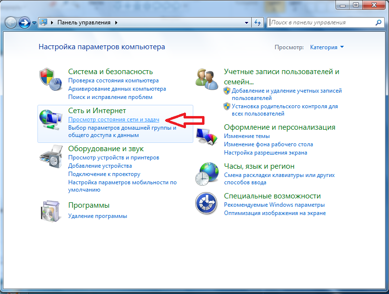 2. В підрозділі Сеть и Интернет натисніть Просмотр состояния сети и задач: