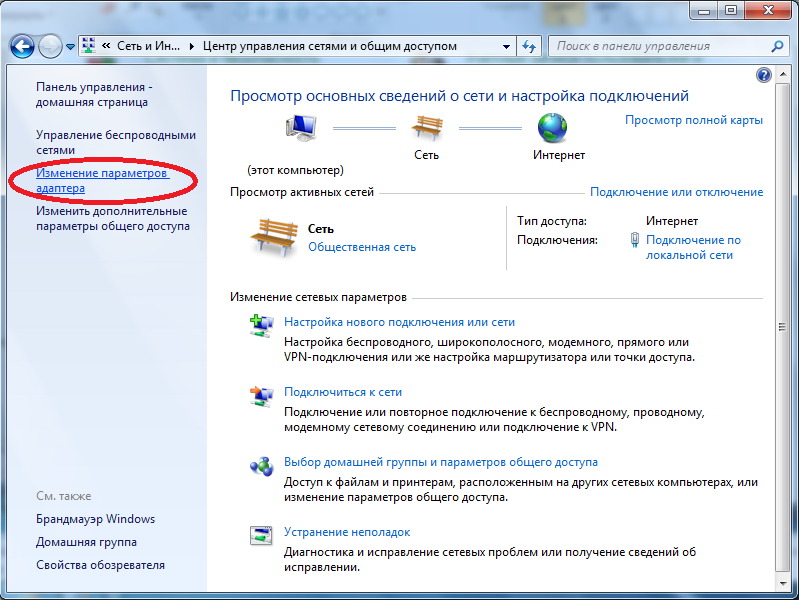 3. В Центре управления сетями и общим доступом натисніть Управление сетевыми подключениями: